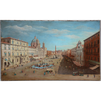 Ignoto dalla stampa del dipinto di Vanvitelli "Piazza Navona a Roma" olio su tela (cm 60x100) (difetti)