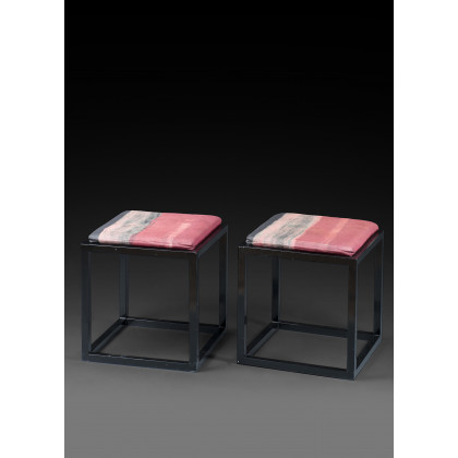 Coppia di sgabelli di forma squadrata in metallo laccato nero (cm 40x40x40) Italia, anni '80 A