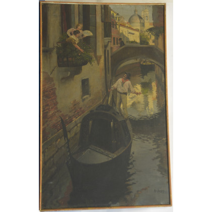 Ignoto "Gondoliere a Venezia" olio su tela (cm 120x74) reca firma in basso a destra, in cornice (difetti)