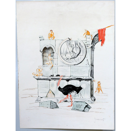 "Senza titolo" litografia (cm 66,4x50) numerata 22/62 e firmata in basso a matita.(Lievi difetti)