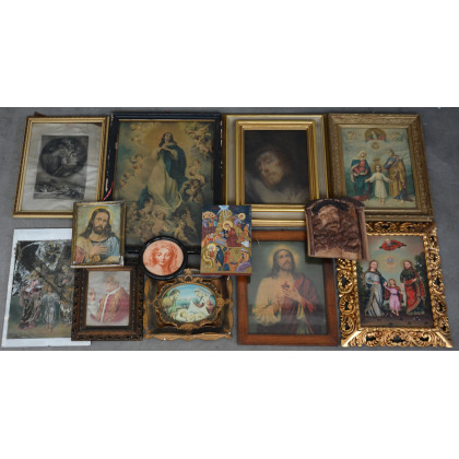 Lotto di due cartoni contenenti numerosi quadri di soggetto religioso; autori, tecniche e misure differenti (difetti)