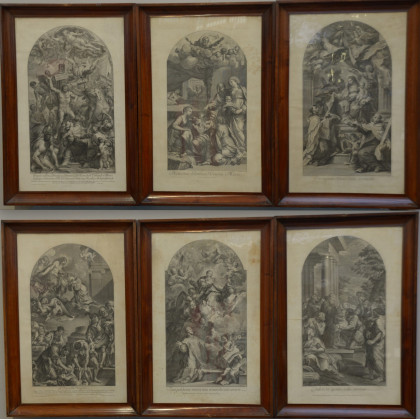 Lotto di sei stampe da Iacobum Frey di soggetto religioso (cm 70x44) sec XIX. In cornici.