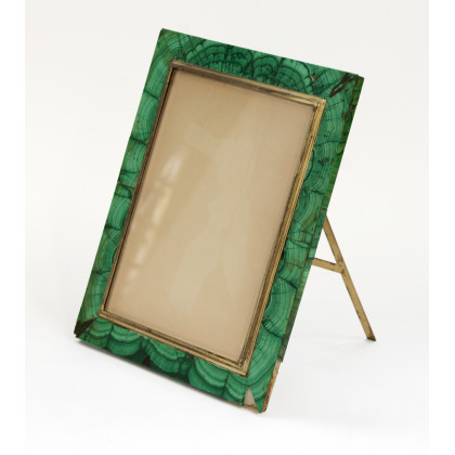 Cornice portafoto lastronata in malachite e costruito in argento dorato (difetti e mancanze)