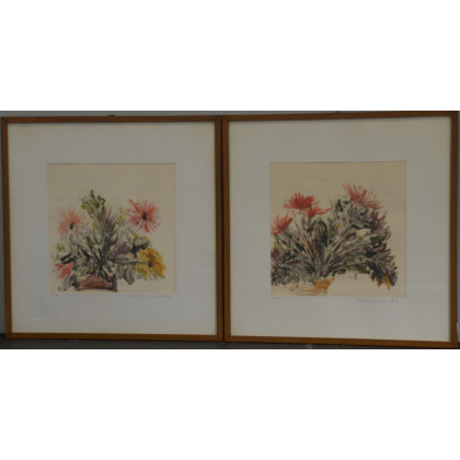 Luciano Boschi. Lotto composto da due monotipi raffiguranti fiori in cornici