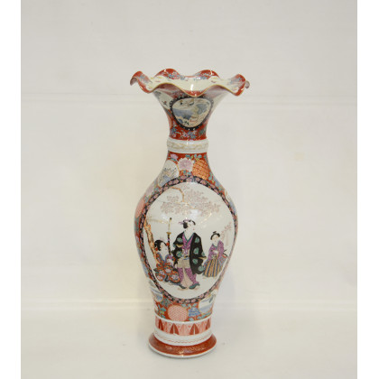 Vaso in porcellana stile Imari con decorazione policroma di figure (restauro bocca) Giappone, periodo Meiji (1868-1912) (h.78 cm.)