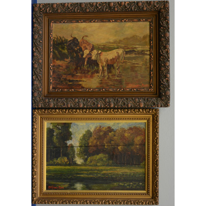 Ignoto. “Paesaggi”, due dipinti olio su tavola, misure diverse, firmati N Faieti-Boni, in cornici (difetti)