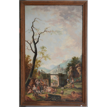 Ignoto "Scena pastorale" olio su tela (cm 145x88) in cornice (difetti)
