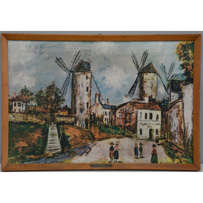 Riproduzione da un dipinto di Maurice Utrillo (cm 34x50) in cornice (difetti)