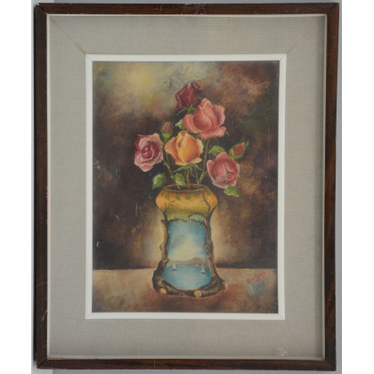 "Vaso con fiori" olio su tela (cm 40x30) firmato in basso a destra, in cornice (difetti)