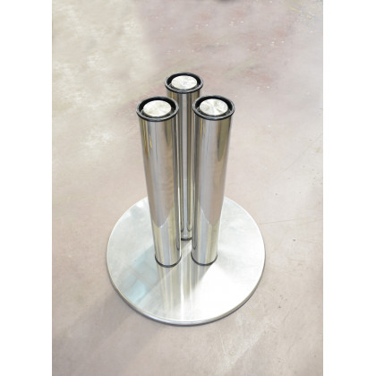 Base di tavolo da salotto modello "Marcuso". Produzione Zanotta, 1971. Tre gambe in tubo di acciaio cromato (h cm 70 ca) (difetti e mancante del piano)