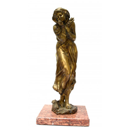Ignoto "Spigolatrice" scultura in bronzo (h. cm 64) Poggiante su base in marmo rosa