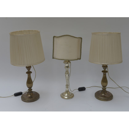 Gruppo di tre candelieri in metallo argentato, montati a luce elettrica (h cm 24) (difetti)
