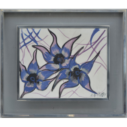 Firma indecifrata, "Fiori" olio su tela (cm 42x52) firmato e datato 1977 in basso a destra, in cornice