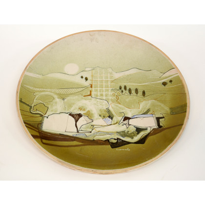 Ceramiche artistiche noma, Santo Stefano di Camastra, grande piatto decorativo in ceramica raffigurante un paesaggio (d cm 47) firmato in basso a destra