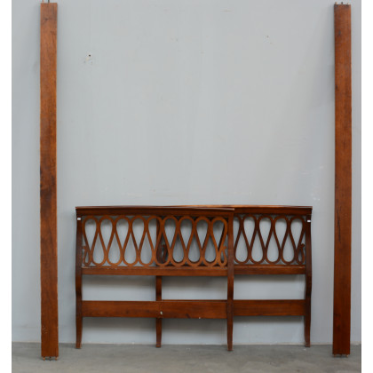 Letto a una piazza con struttura in legno e sponde a ringhiera, completo di cinque cuscini (lievi difetti)