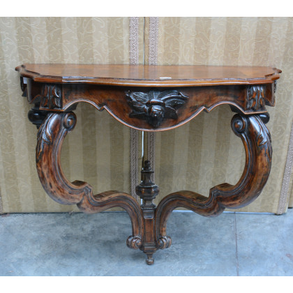 Piccola console a "goccia" in legno intagliato di forma mossa (cm 76x63x40) (difetti)