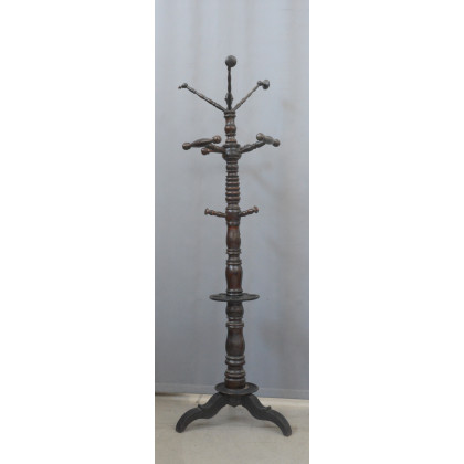 Attaccapanni da terra tripode in legno tornito (h cm 198) (difetti e mancanze)