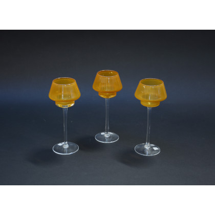 Tre calici porta candele in vetro con coppa color ambra (h cm 20)