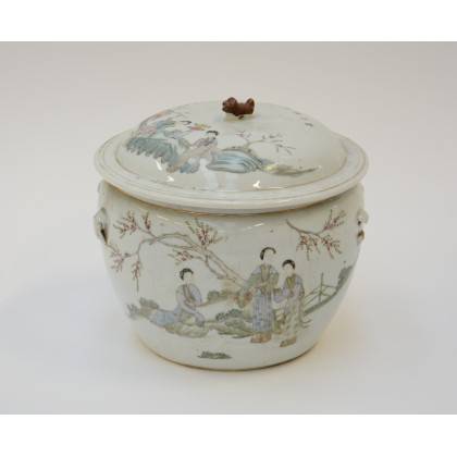 Una potiche Famiglia Rosa decorata con figure (difetti e restauri) Cina, sec. XX (h. 21 cm.)