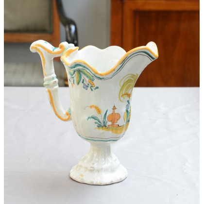 Versatoio in maiolica decorato con fiori e palma (h cm 22) secolo XVIII (difetti)