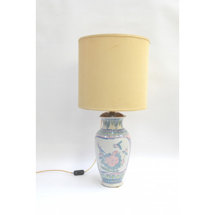 Vaso in ceramica decorato in policromia a motivi naturalistici montato a luce elettrica (h vaso cm 36) (lievi difetti)