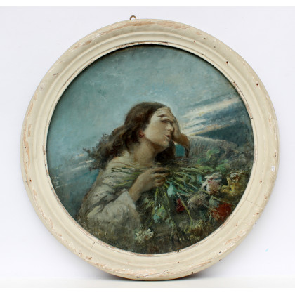 (Attribuito) "Addolorata" olio su tela applicata a cartone (d cm 69) firmato in basso a sinistra, in cornice (difetti)