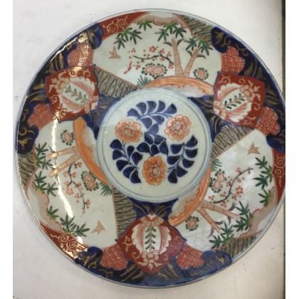 Piatto in porcellana Imari a decoro floreale. Giappone, sec. XIX (d cm 37)