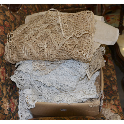 Cartone contenente numerosi drappi in rete ad uso decorativo per le finestre (difetti)