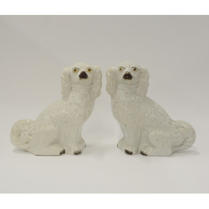 Manifattura inglese. Coppia di sculture raffiguranti cani in ceramica (difetti)