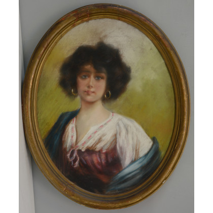 Ignoto "Ritratto di fanciulla" pastello ovale (cm 74x56) reca firma V.Caprile in basso a destra, in cornice (difetti)