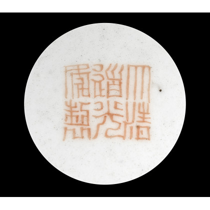 Ciotola in porcellana Famiglia Rosa decorata a motivi floreali, marchio Daoguang alla base e del periodo, unita ad una coppetta in porcellana decorata a motivi floreali (difetti) Cina, dinastia Qing, periodo Daoguang (1821-1850) (d. max 18,5 cm.)