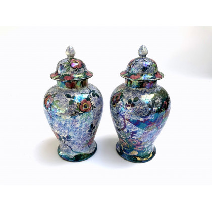 Coppia di potiches in ceramica decorate a motivi floreali. Inghilterra, secolo XX (h cm 26) (difetti e restauri)