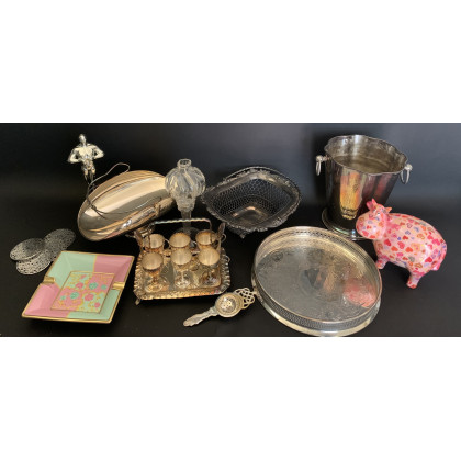 Due cartoni contenenti numerosi oggetti in metallo argentato e altri materiali (difetti)