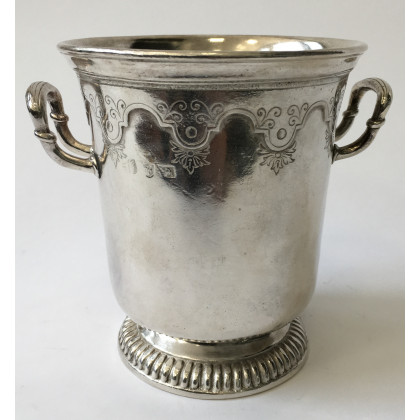 Secchiello porta ghiaccio in metallo argentato, inscritto "ITALIA" con corona sulla vasca (h. cm 16,5)