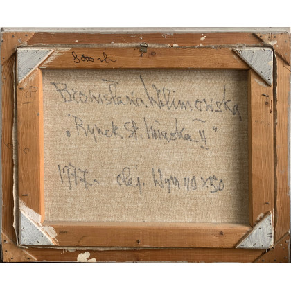 "Rynek..." 1977 olio su tela cm 40x50 firmato in basso a sinistra; firmato, titolato e datato al retro. In cornice