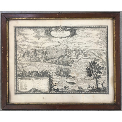 Incisione del sec. XVII raffigurante scena di battaglia iscritta e datata 1659 in alto al centro, in cornice del sec XIX (difetti)