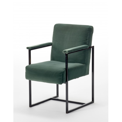 Poltroncina con struttura in tubolare metallico a sezione quadrata verniciato nero e seduta, schienale e braccioli in velluto verde. Milano, anni '30. (cm 54,5x90x63) (lievi difetti e restauri) Provenienza Studio d’Architettura Franco Albini, Giancarlo Palanti, Renato Camus, via Panizza Milano; Famiglia Morganti Bibliografia "Domus", n. 122, febbraio 1938, copertina Archivi: Fondo Giancarlo Palanti, Archivio del progetto, IUAV, Venezia