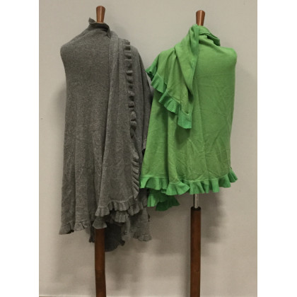 Lotto composto da un scialle verde mela e una mantella grigio melange entrambe in cashmere (gravi difetti)