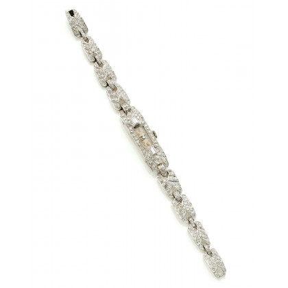 LIP Orologio da donna in oro bianco con diamanti per complessivi ct. 3,20 circa, g 24,3 circa, lungh. cm 16 circa. Marchio di saggio francese sulla cassa e sul bracciale