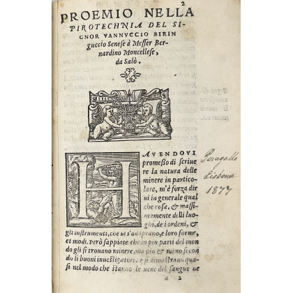 BIRINGUCCIO, Vannoccio. Pirotechnia. Venezia, 1559. 8vo (141 x 92mm). Decine di illustrazioni xilografiche nel testo (manca il frontespizio, alcune macchie, bruniture e fioriture). Mezza pelle del XIX secolo (lievi difetti, giunture deboli). Il lotto non è collazionato, presenta difetti da esaminare e non è passibile di storno.