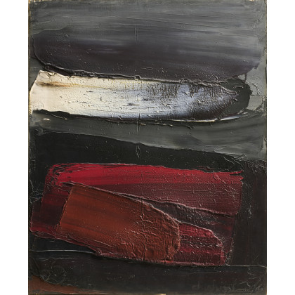 "Senza titolo" 1955 olio su tela cm 49,5x40 Firmato in basso a destra Provenienza Collezione Alessandrini - Calmes, Milano Opera accompagnata da certificato di autenticità su fotografia rilasciato dal Comitato Promotore Archivio e Catalogo Ragionato delle opere di Alfredo Chighine, Milano, con il n. 154