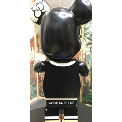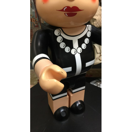 CHANEL Bambola Bearbrick 2006, disegnata da Karl Lagerfeld per Chanel, prodotta in PVC da Medicom, n.137 in edizione limitata a 1000 esemplari, modello di Coco Chanel, “vestita” con abito classico Chanel, perle finte e occhiali da sole. (cm 72x35x13 ca.) (lievi difetti, segni d'uso)