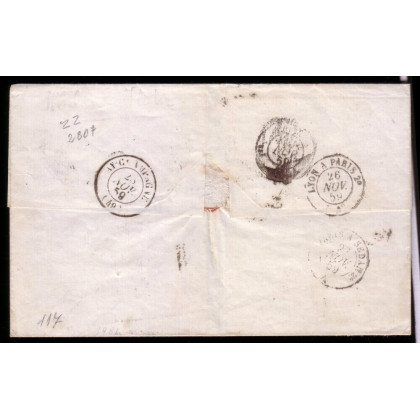 FRANCIA 1859 (24 nov.) Posta Militare Lettera senza testo da Milano per Mareuil-sur-Ay (Francia) affrancata con 20c. azzurro "Napoléon III" Lettera scritta da un militare appartenente all' "Armée d'Italie" e inoltrata tramite la posta civile Cert. En. Diena Cover..........(Yv. 14)