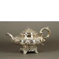 1612Caffettiera in argento con corpo cesellato a volute. Presa…Valutazione € 700 - 800Aggiudicato € 800