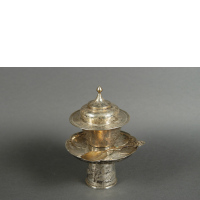1572Arte tibetana sec. XIX. Piattino in ottone con supporto…Valutazione € 100 - 120