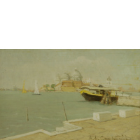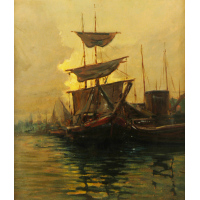 1817Ignoto fine sec. XIX "Veliero in porto" olio su…Valutazione € 500 - 600