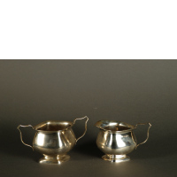 1828Lattiera e zuccheriera in argento liscio con corpo bombato…Valutazione € 80 - 90