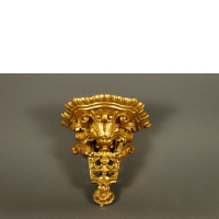 1863Piccola mensola in legno dorato traforato e scolpito a…Valutazione € 200 - 250