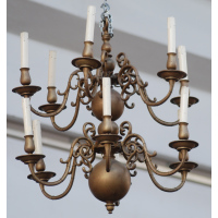 931Lampadario olandese in bronzo a dodici luci sovrapposte, bracci…Valutazione € 120 - 150Aggiudicato € 100