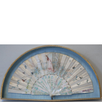 998Ventaglio con stecche in madreperla, pagina dipinta a mano…Valutazione € 350 - 400